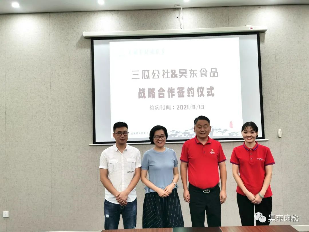 2021年8月13日昊東食品電商部正式與三瓜公社電商部牽手,達成戰(zhàn)略合作協(xié)議。未來我們將借助三瓜公社強大的影響力,開辟線上銷售新路徑,實現(xiàn)線上與線下的完美結合。