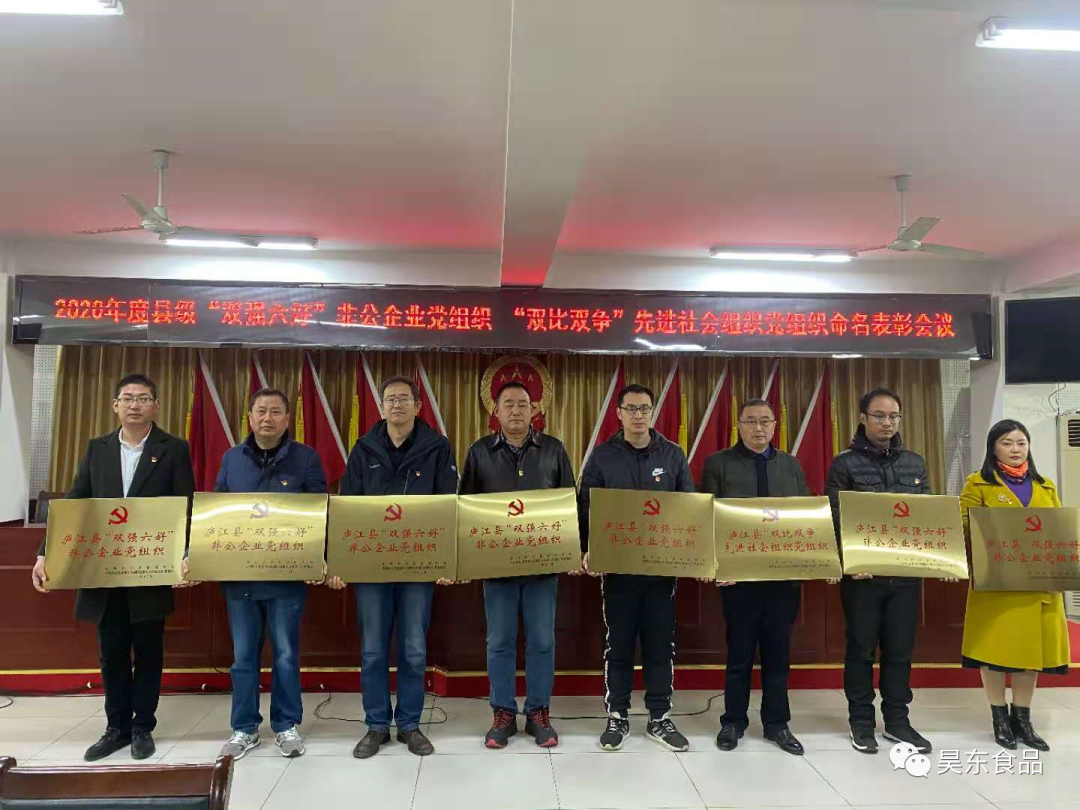 昊東食品黨支部榮獲第一屆縣級“雙強六好”非公企業(yè)黨組織