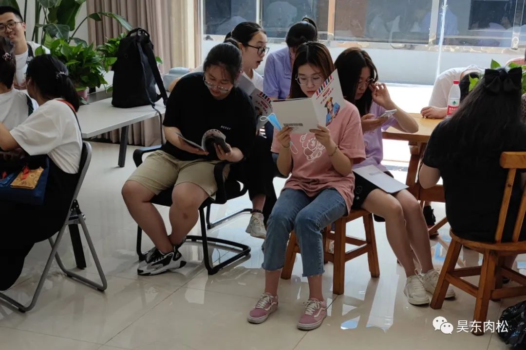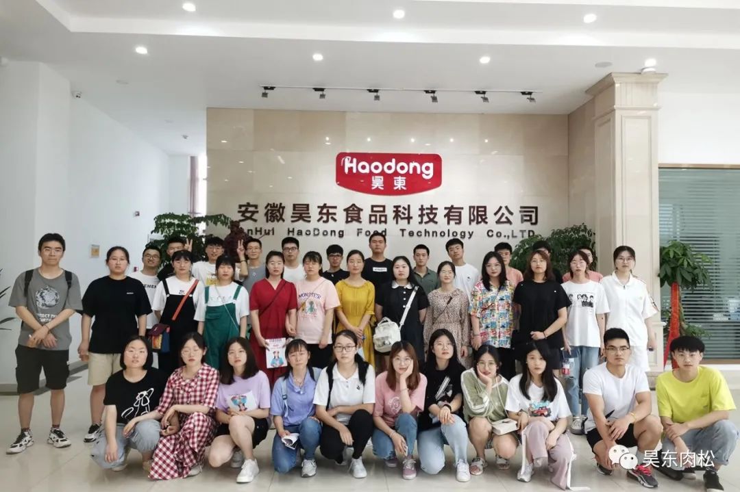 同學(xué)們?cè)谛菹⒅?,大家一起合影留念。我公司為學(xué)生們提供了多種口味的肉松請(qǐng)學(xué)生們來(lái)品嘗,使其更加直觀了解我公司食品制作技術(shù)的成果。